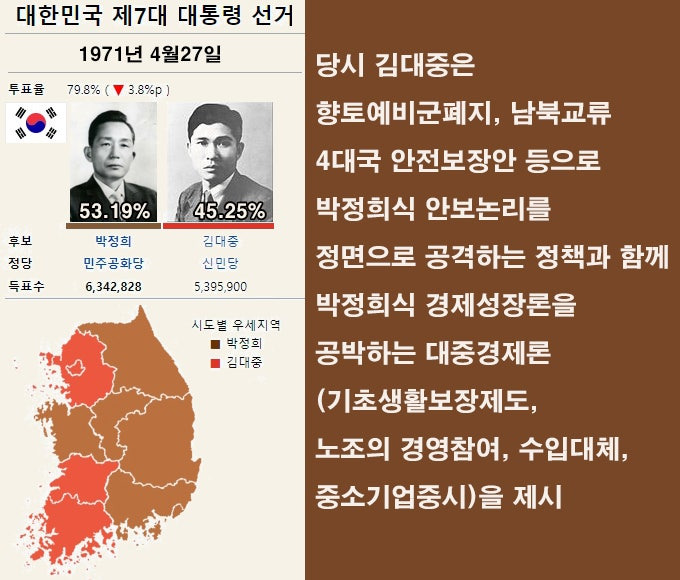 박정희 정권은 내부적으로 민주주의와 인권을 억압했다는 비판을 받습니다. 집권 초기부터 언론 통제와 정보 조작을 통해 국민의 눈과 귀를 막았으며 국회 해산(1969), 비상계엄 선포(1971) 등의 강수를 두기도 했습니다.